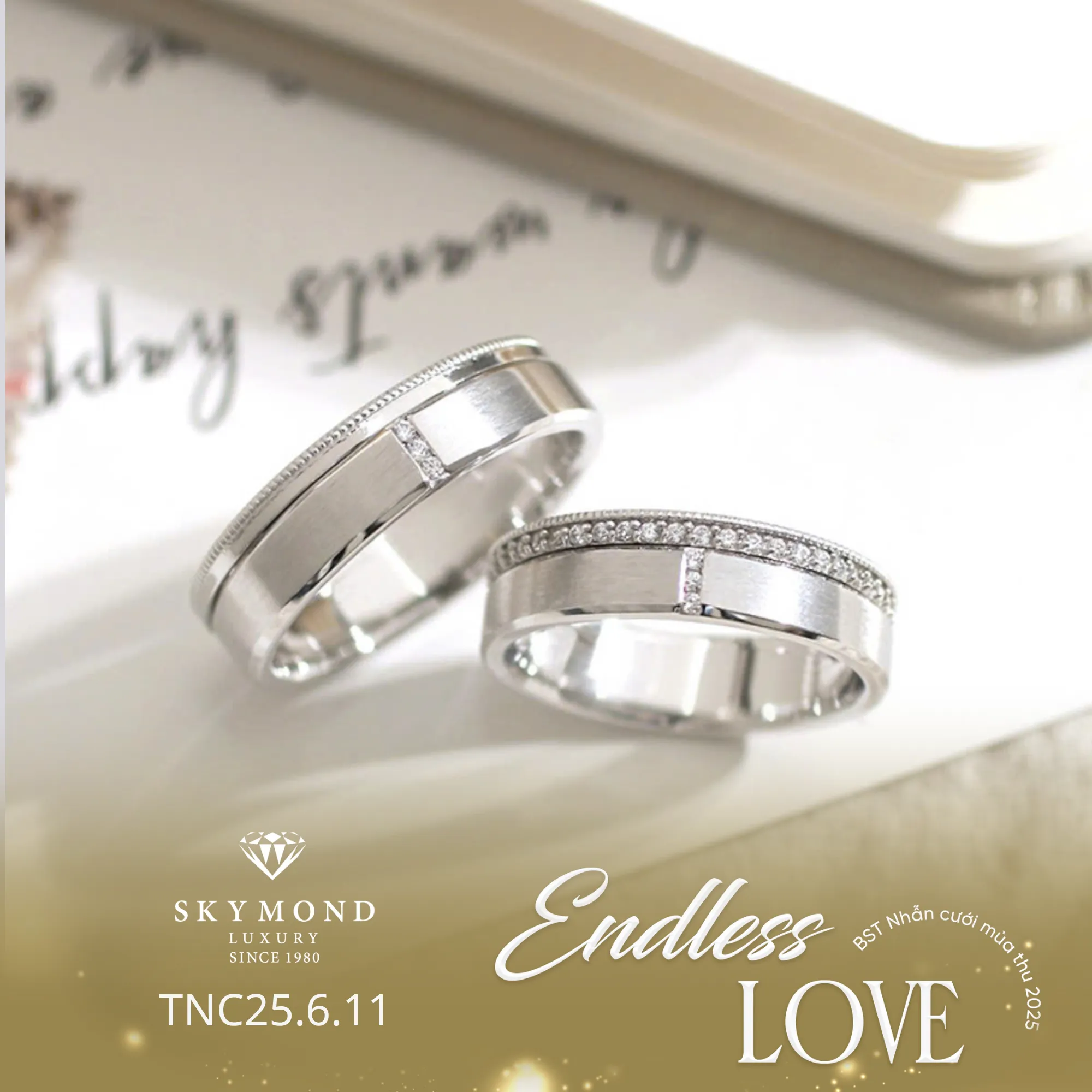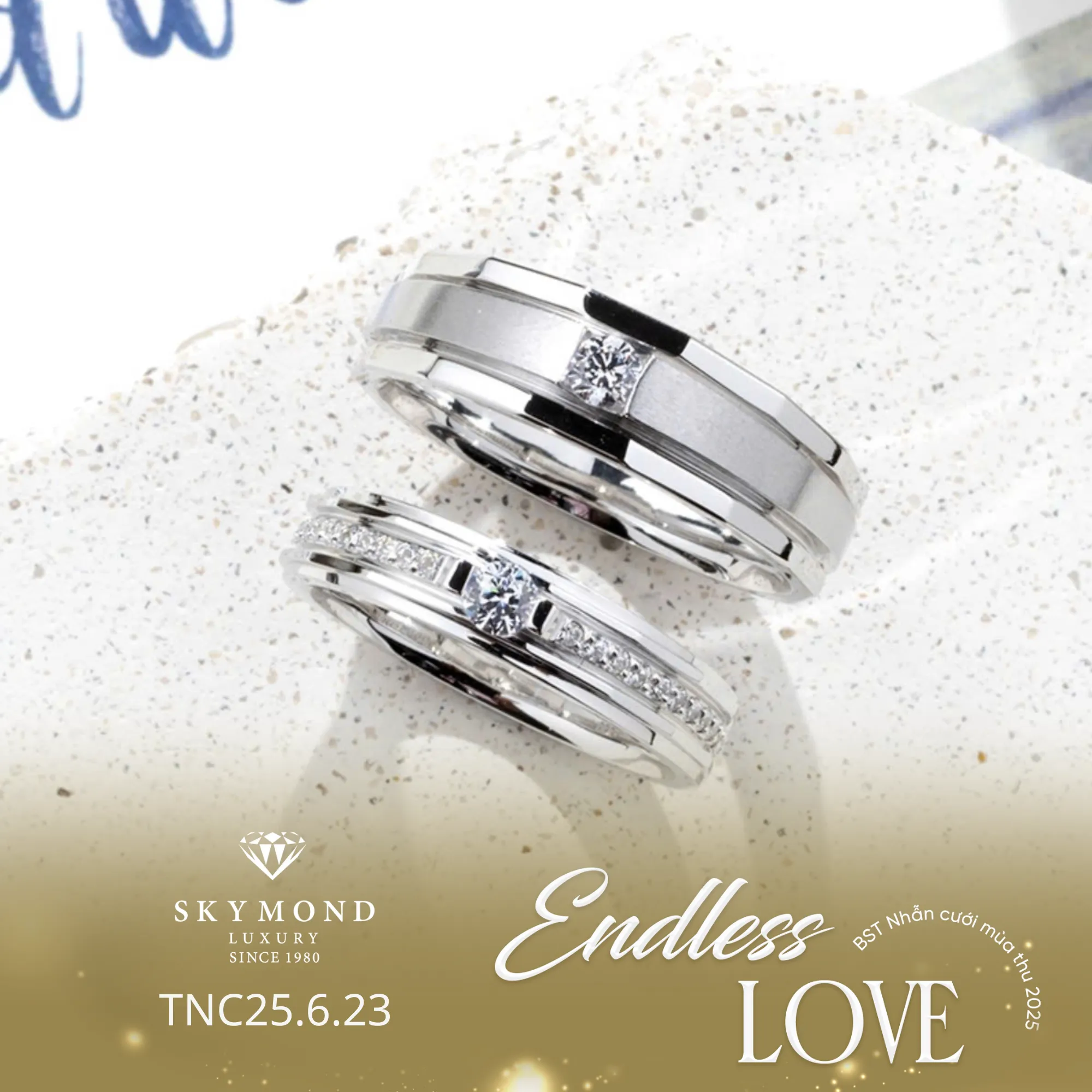 Skymond Luxury – Nơi khơi nguồn cảm hứng cho những tuyệt tác nhẫn cưới Platin và Kim cương hàng đầu Việt Nam. Chúng tôi không chỉ bán trang sức, chúng tôi cùng bạn lưu giữ những kỷ niệm đẹp nhất của tình yêu.