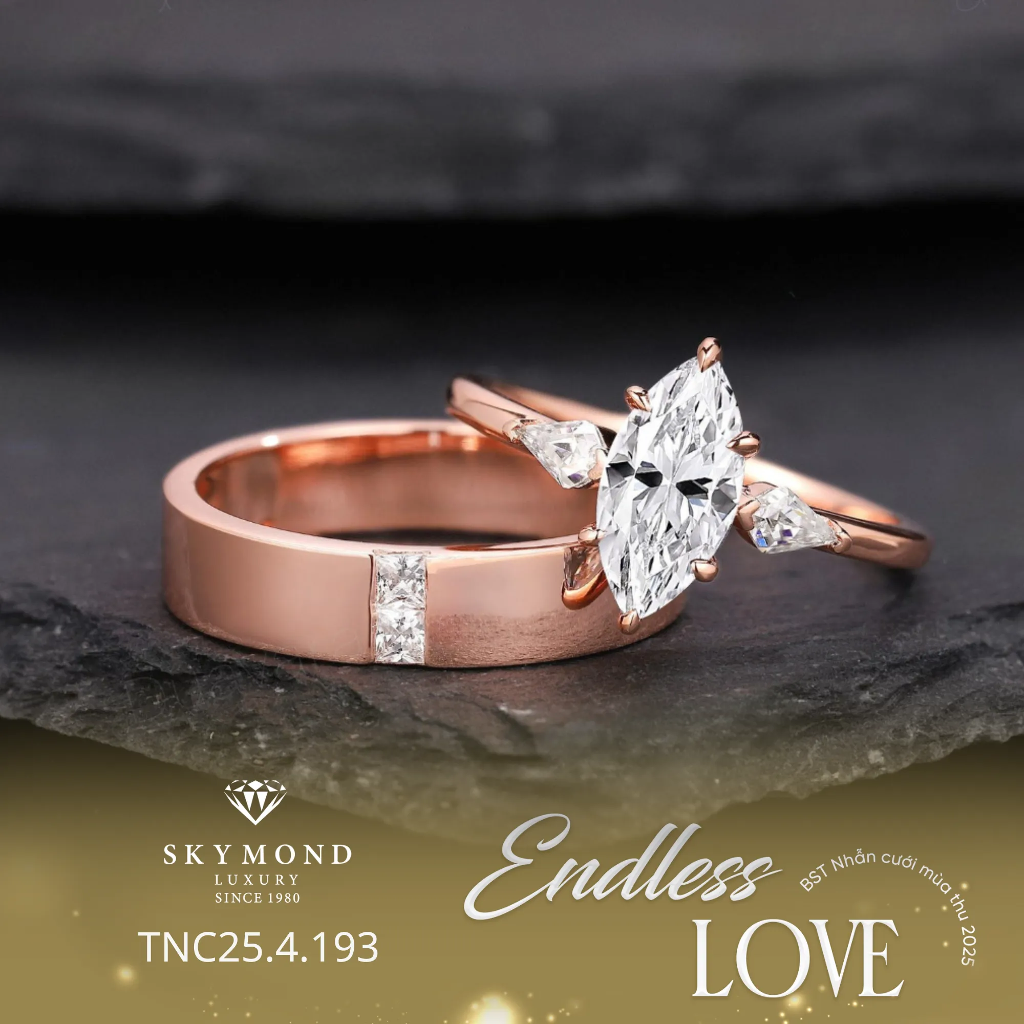 Skymond không đi theo lối mòn của các cửa hàng vàng truyền thống. Mỗi bộ sưu tập nhẫn cưới của hãng đều mang hơi thở của thời đại, được lấy cảm hứng từ những kinh đô trang sức thế giới như Pháp, Ý, Nhật Bản.